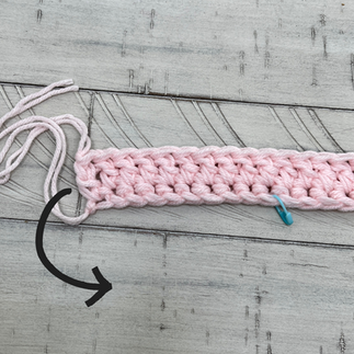 (RS) Row 3: (Baby Pink) Rotate your work 180 degrees (don’t flip the work) so that the right side is still facing you. Working on the unworked side of the foundation chain, ch 2, hdc 120. Tie off and weave in ends.
